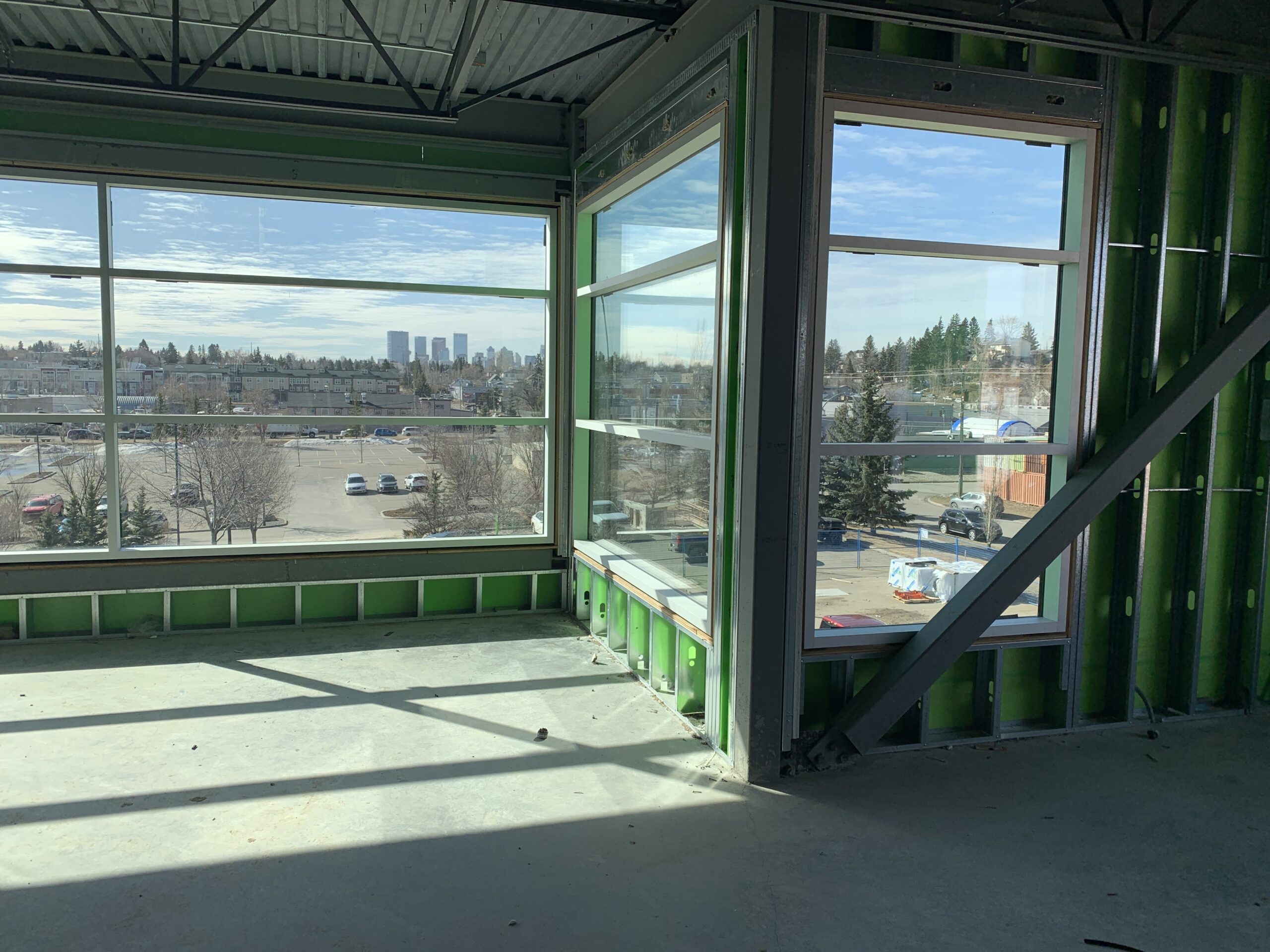 The view through some of the newly installed windows of the city reminds us of our mission to reach our friends and neighbours for Christ, whether they are downtown in a high-rise or in the suburbs.