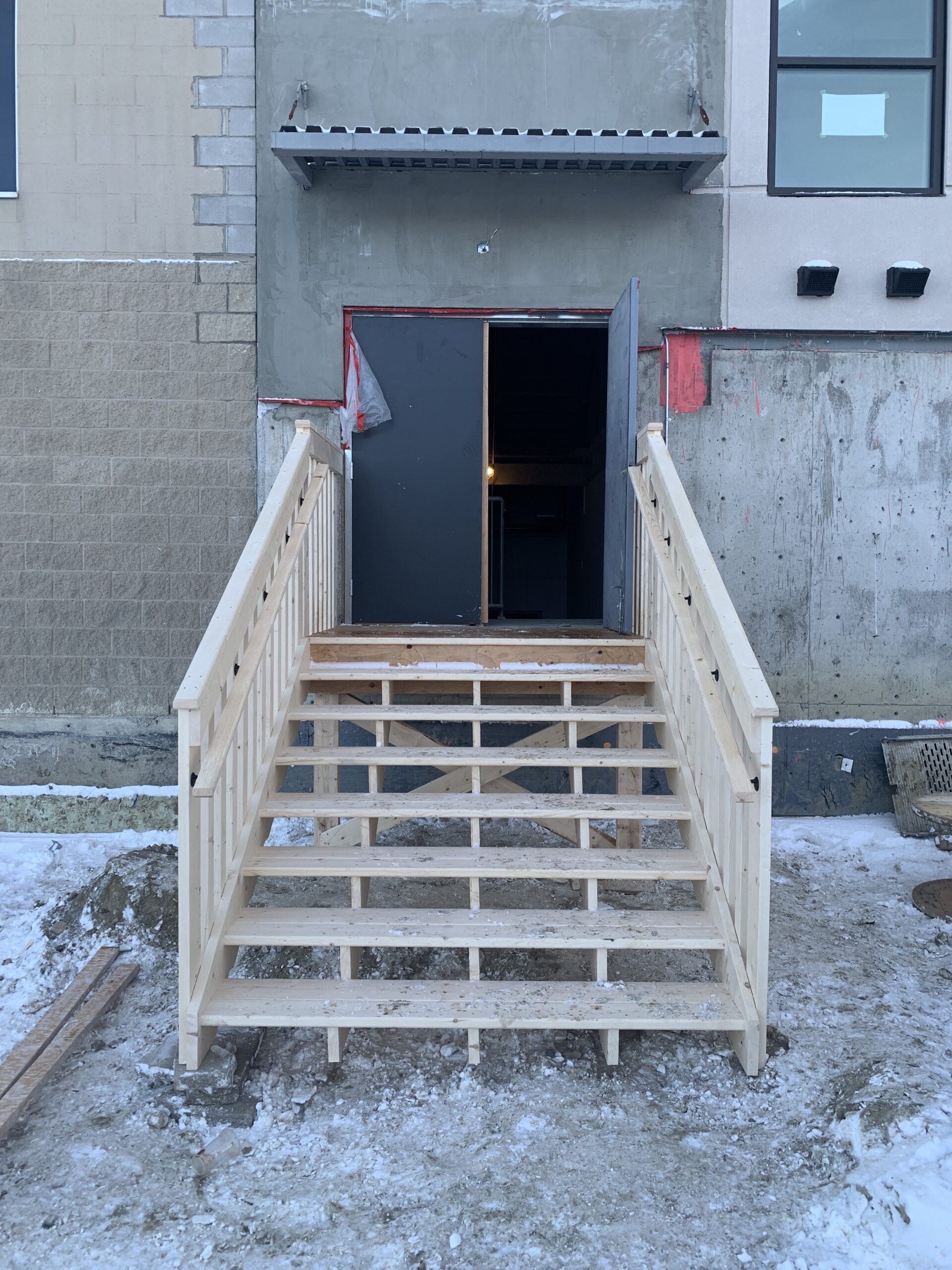 - Wooden stairs have been installed on the north side for emergency egress from the sanctuary.