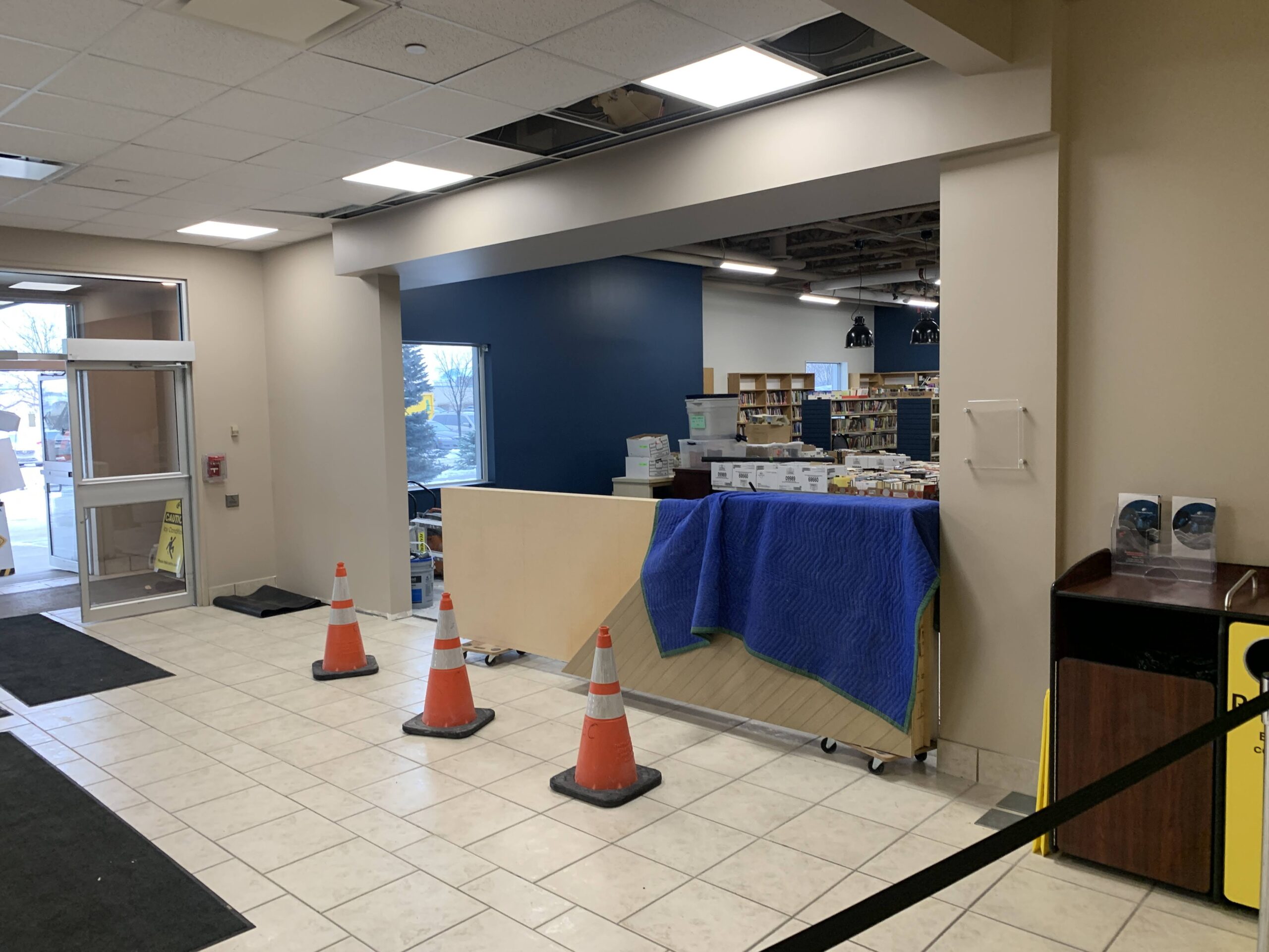 - The book/library area next to the east entrance is being redeveloped and will include a reception area.