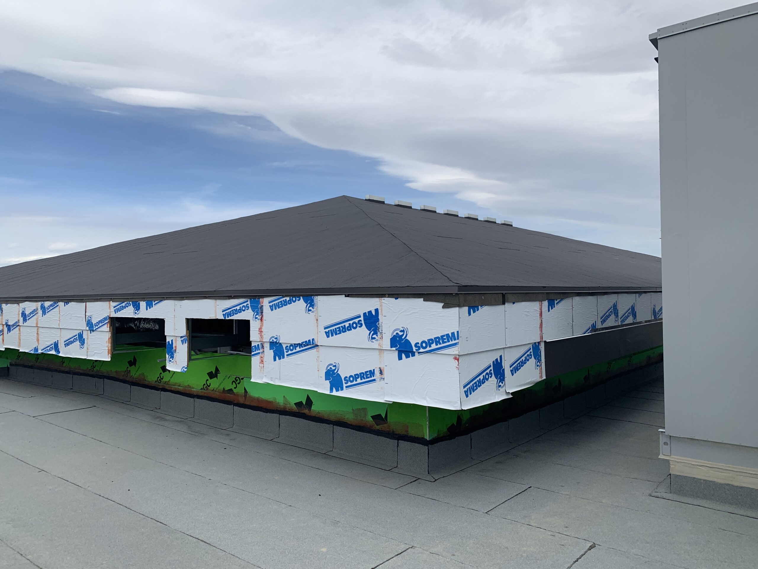 - Roofing work continues including the portion that covers the connection between the existing building and the expansion.