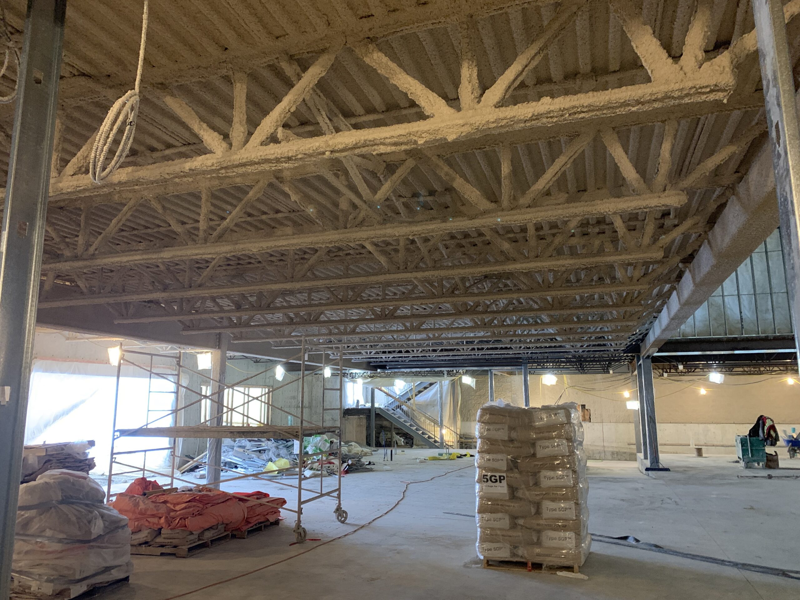 - At Central Campus, fireproofing has been sprayed on the ceiling of the lower level and second floor.