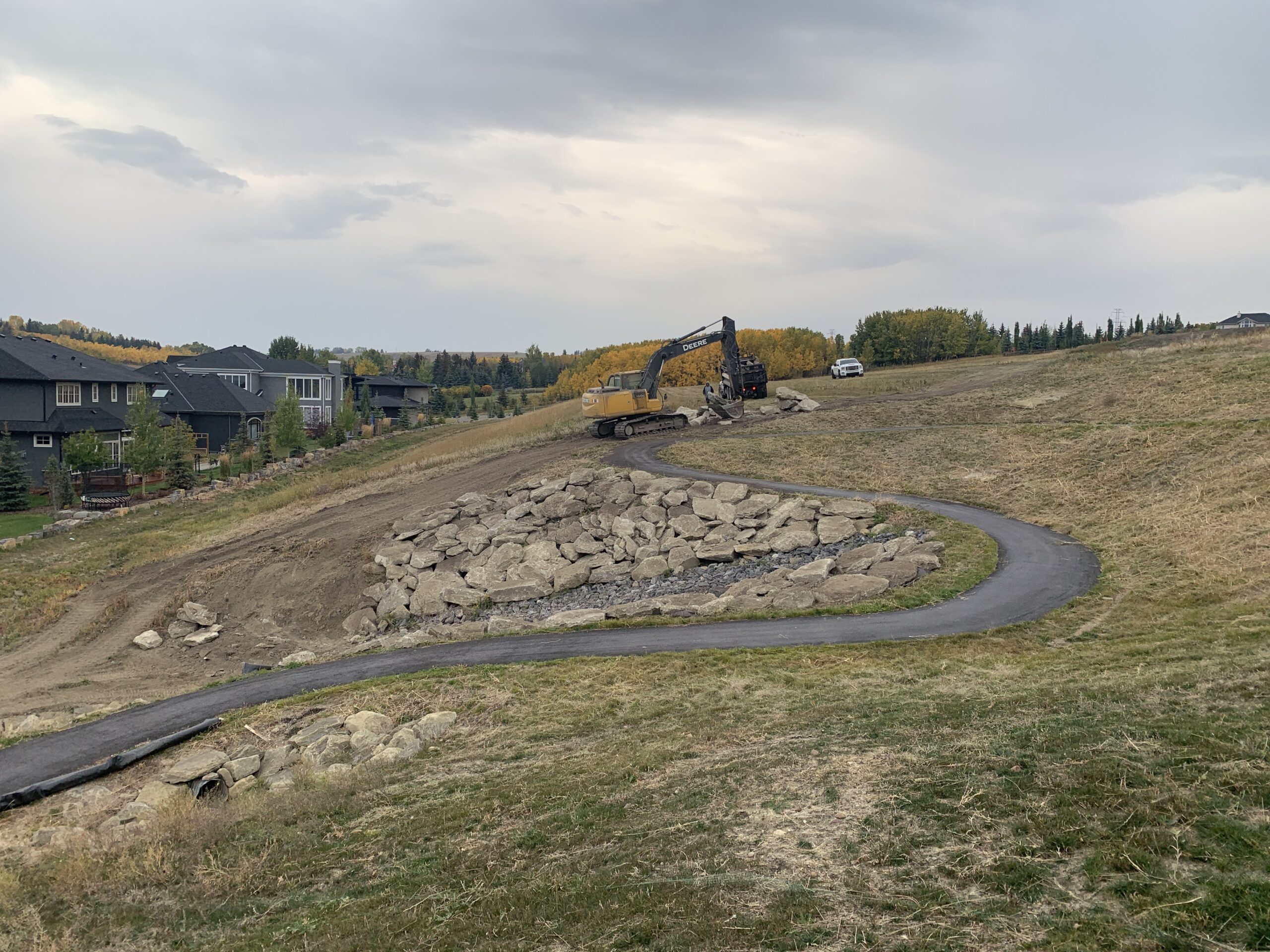 - Large rocks have recently been installed on the regional pathway area on the slope next to Bearspaw to provide additional stability to the soil.