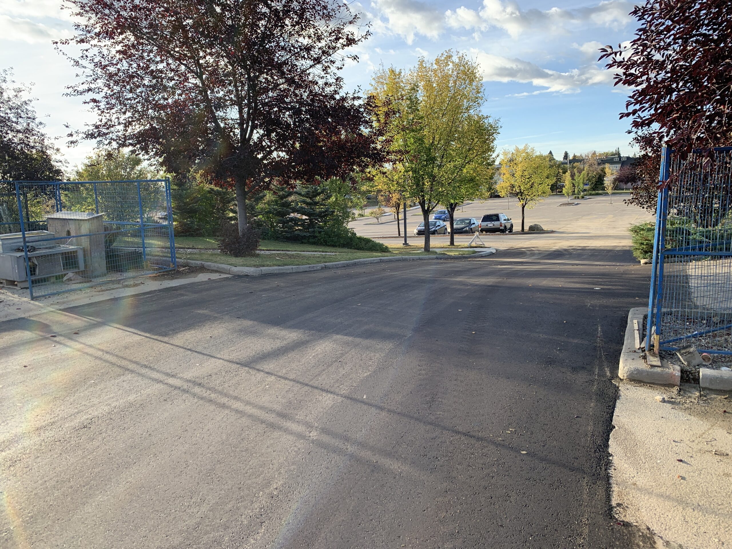 - The new entrance to the south parking lot from 38 Ave has been paved and will soon have concrete curbs installed.