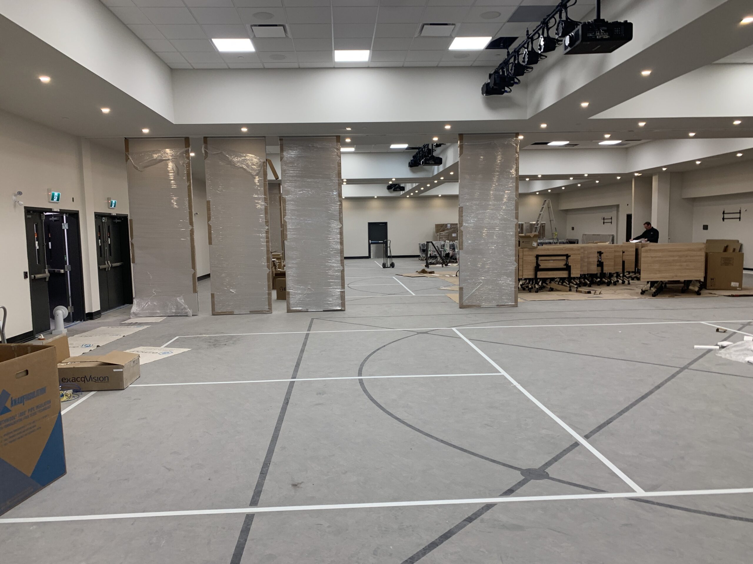 - Some operable walls (which divide large spaces into small spaces) have been installed. Some operable walls are arriving later and could be installed after receiving the occupancy permit.